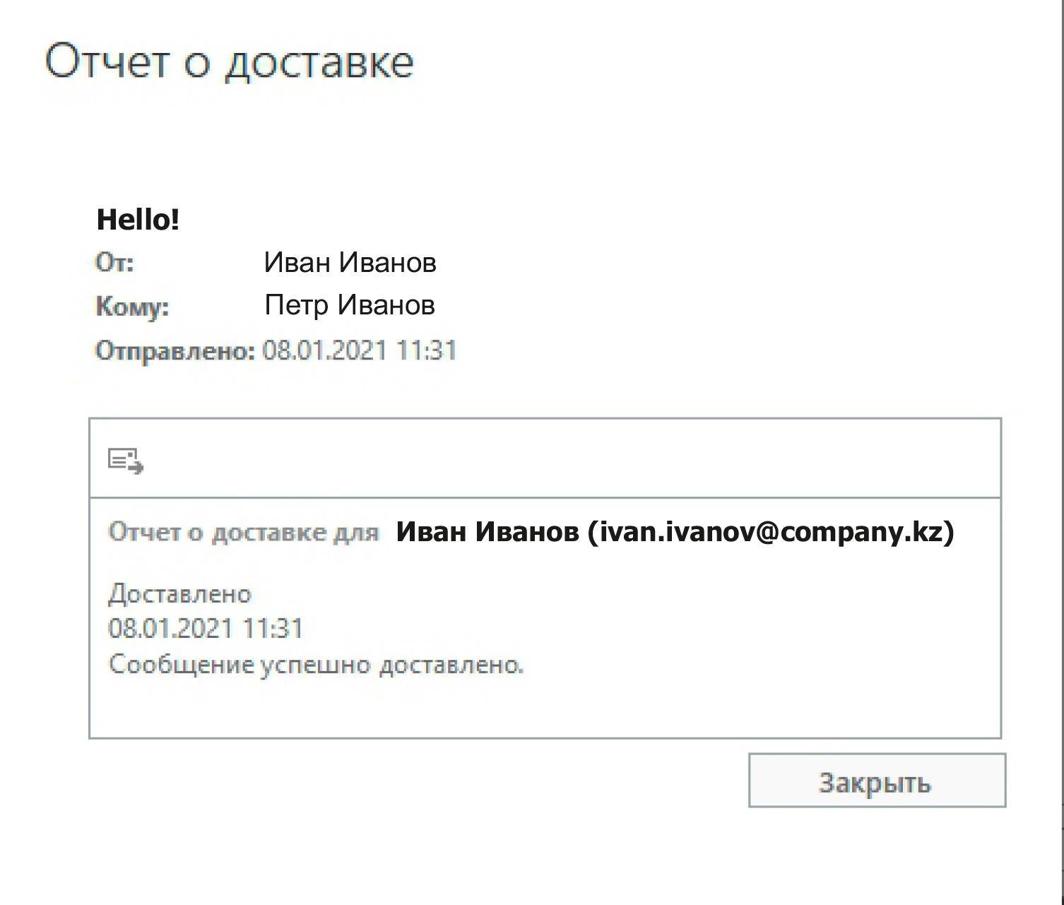 Откроется окно Отчета о доставке