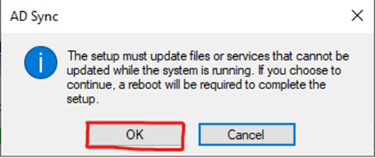 Переименуйте папку C:\Program Files\AD Sync, в AD Sync-Old. При установке будет создана новая папка AD Sync.