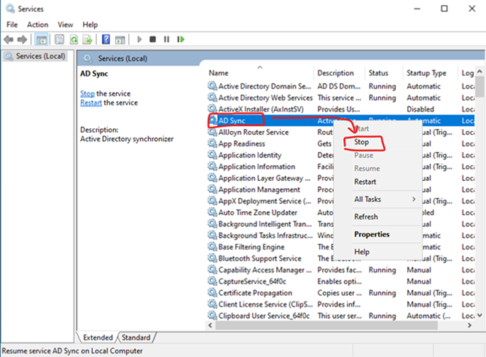 Выполните win+r > services.msc> найдите службу AD Sync и остановите ее.