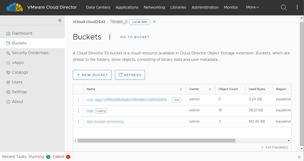 Имена корзин глобально уникальны, а пространство имен совместно используется всеми организациями портала Cloud Director. После создания корзины ее имя нельзя использовать для другой корзины в любой из организаций Cloud Director, пока она не будет удалена. Имена сегментов должны соответствовать требованиям к именованию сегментов S3. См. Требования к именованию корзин Amazon S3.