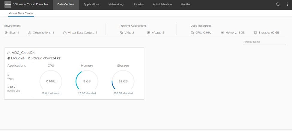 На экране Virtual Data Center щелкните карточку виртуального центра обработки данных: