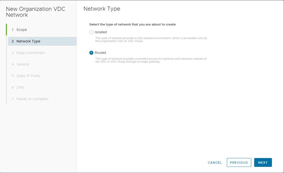 Далее нужно выбрать тип сети, которая будет создана, и нажать NEXT :