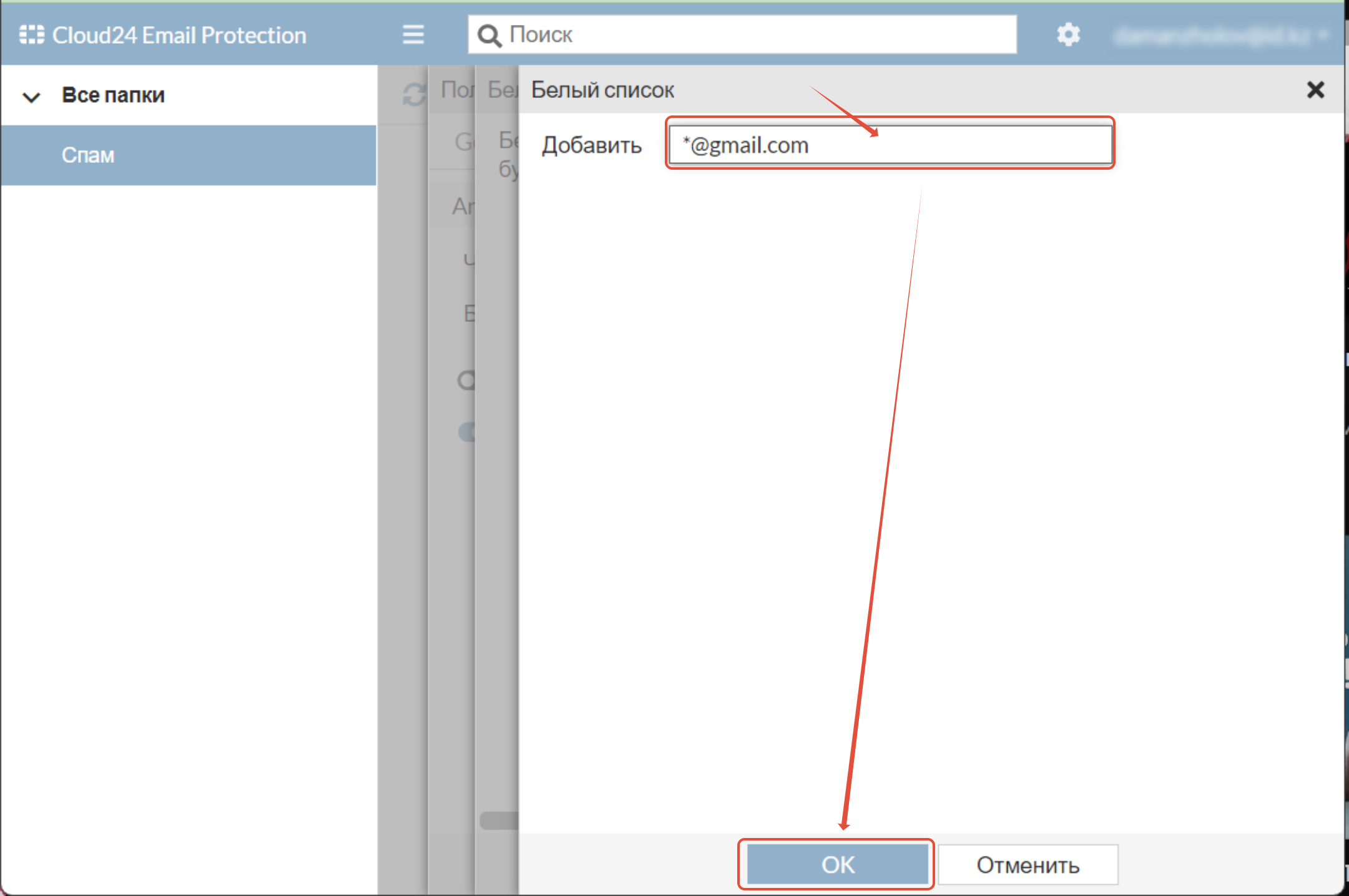Как добавить отправителя в Черный список