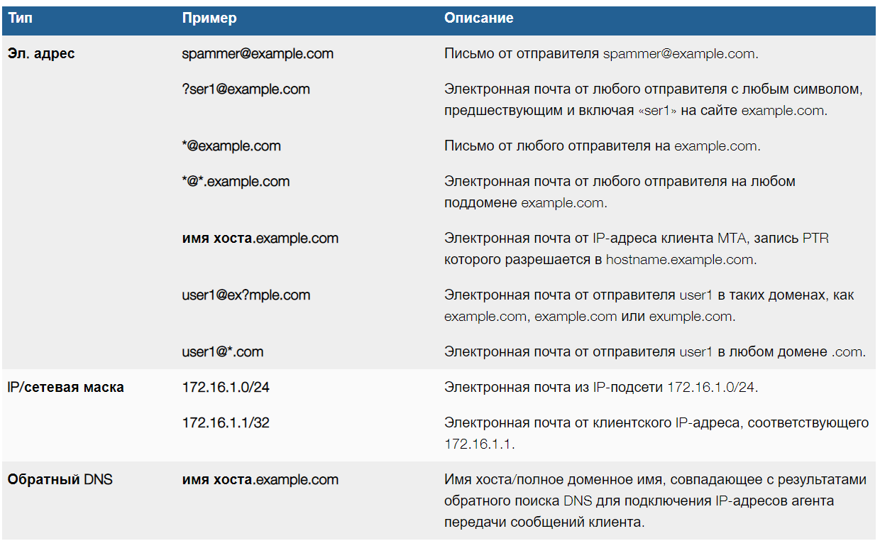 Поддерживаются следующие маски