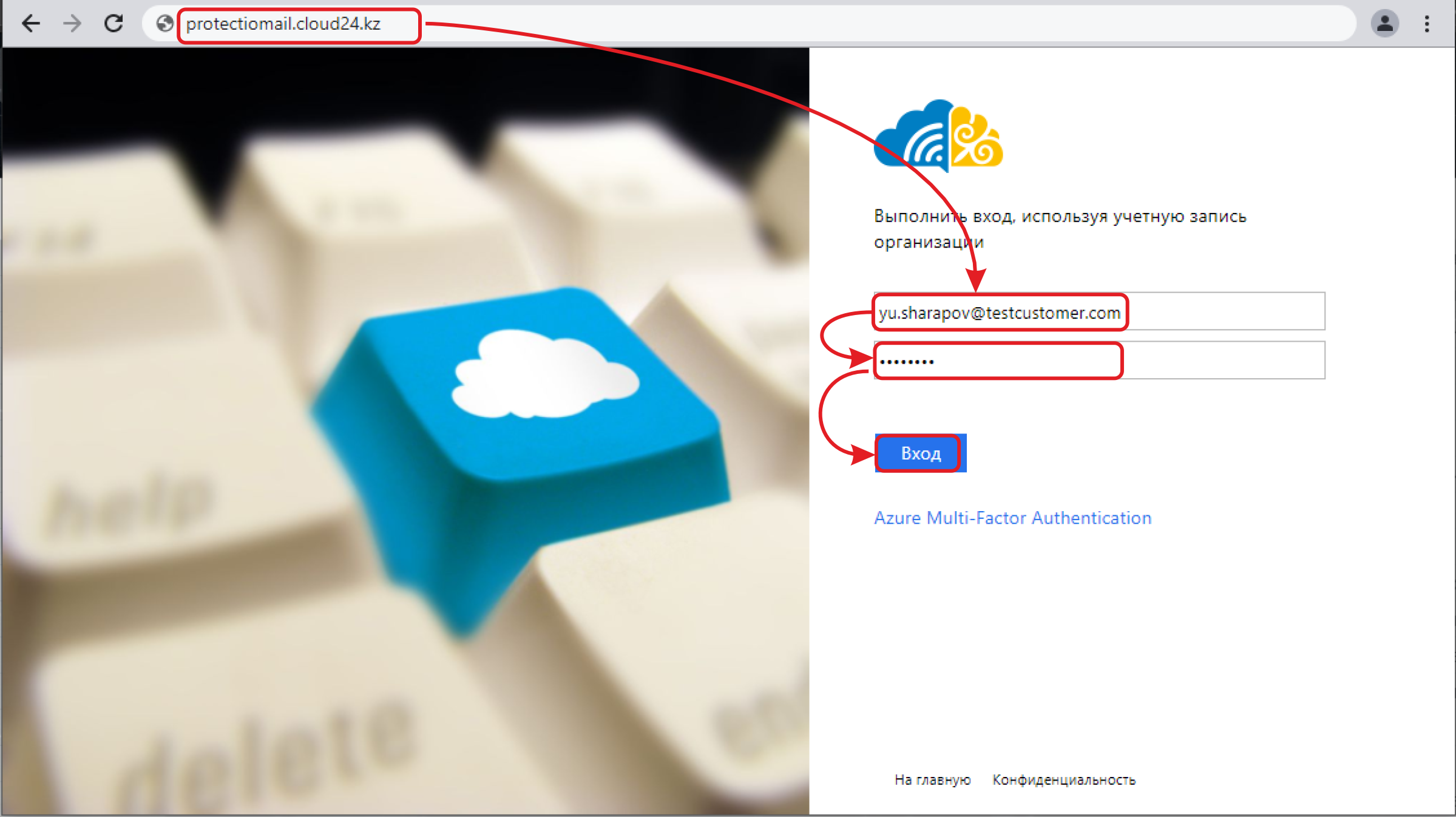 Перейдите по адресу https://protectionmail.cloud24.kz/, нажмите Single Sign On